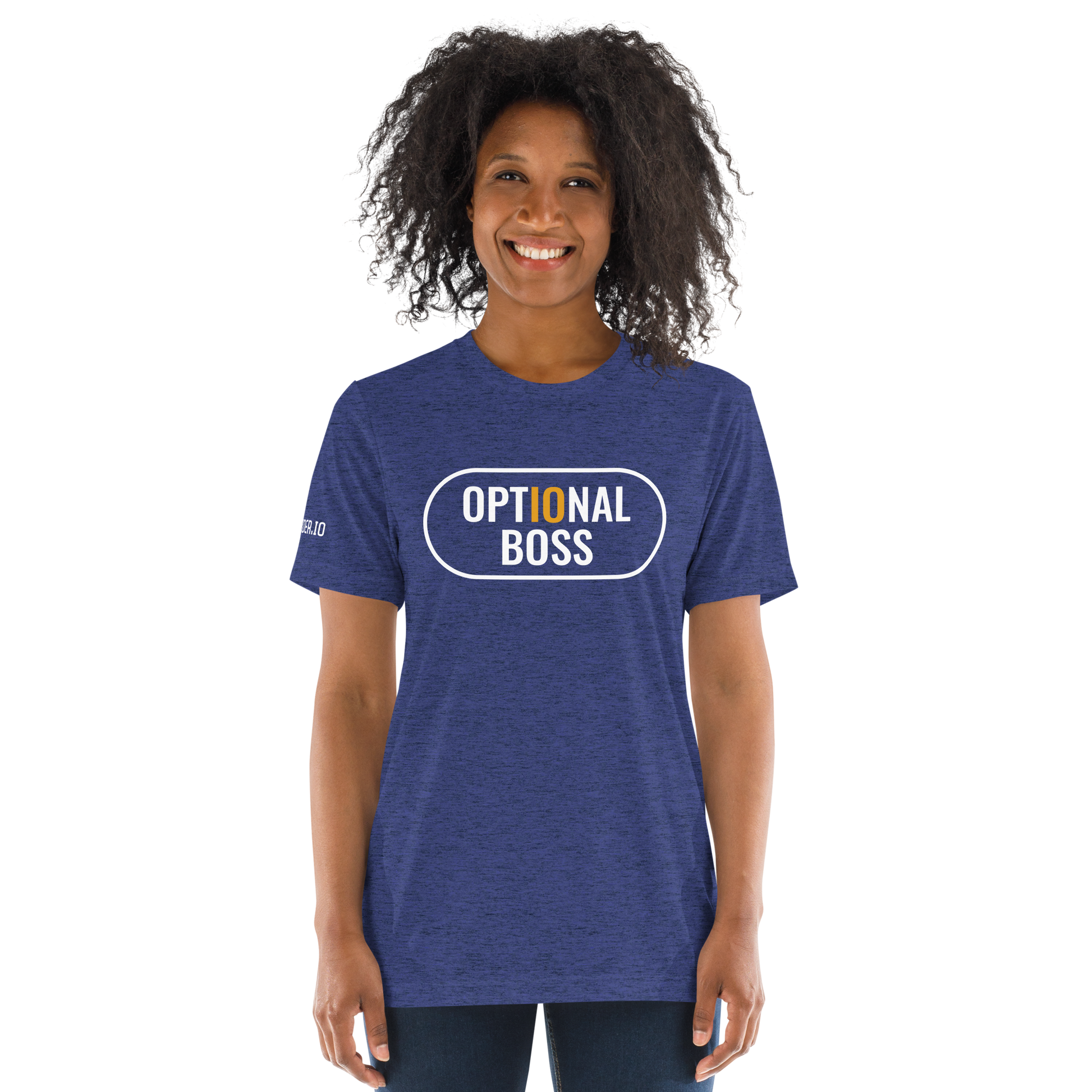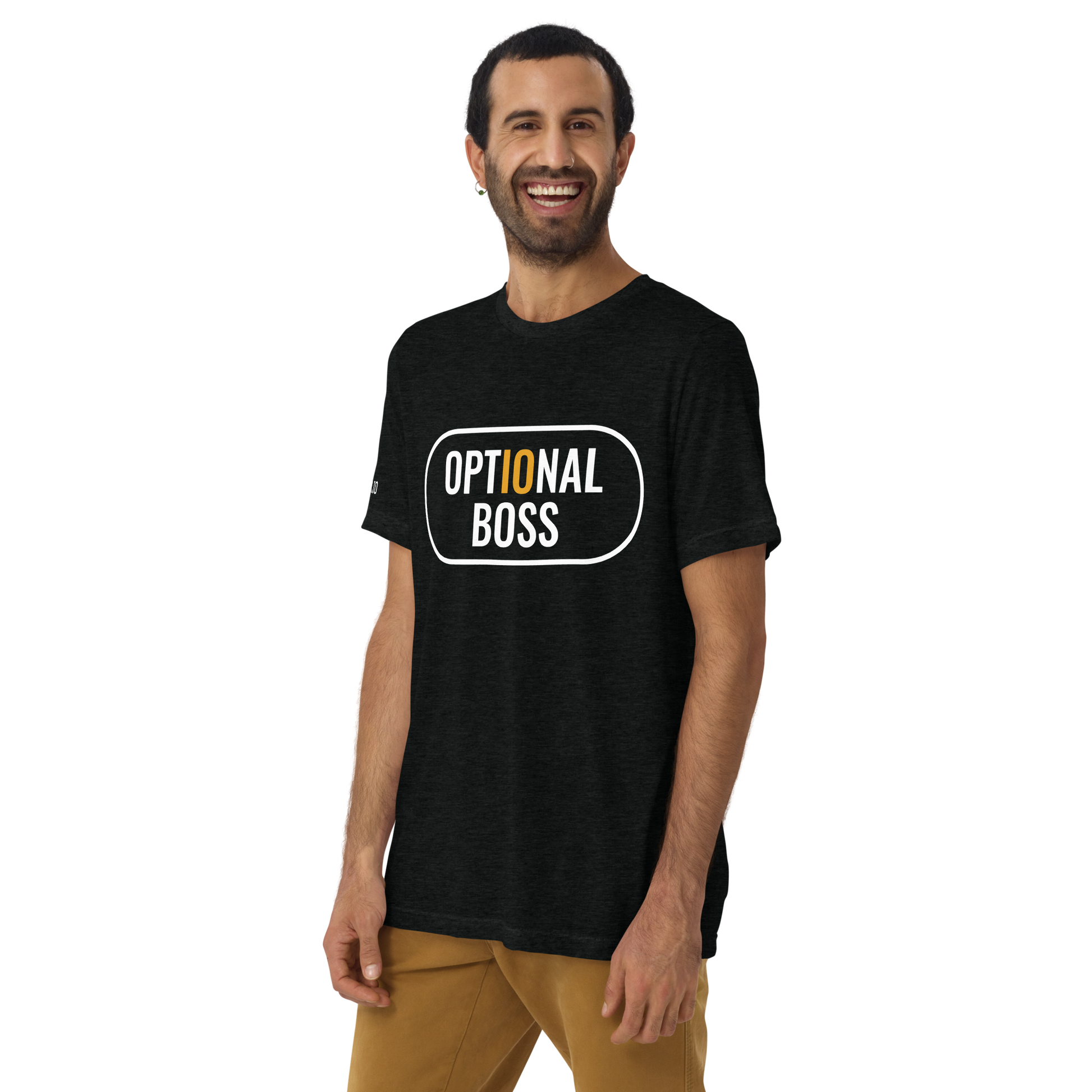 The tri-blend fabric is soft, comfy, and creates a vintage, fitted look. This T-Shirt will quickly became a favourite in your wardrobe, featuring the brand-new OPTIONAL BOSS design!